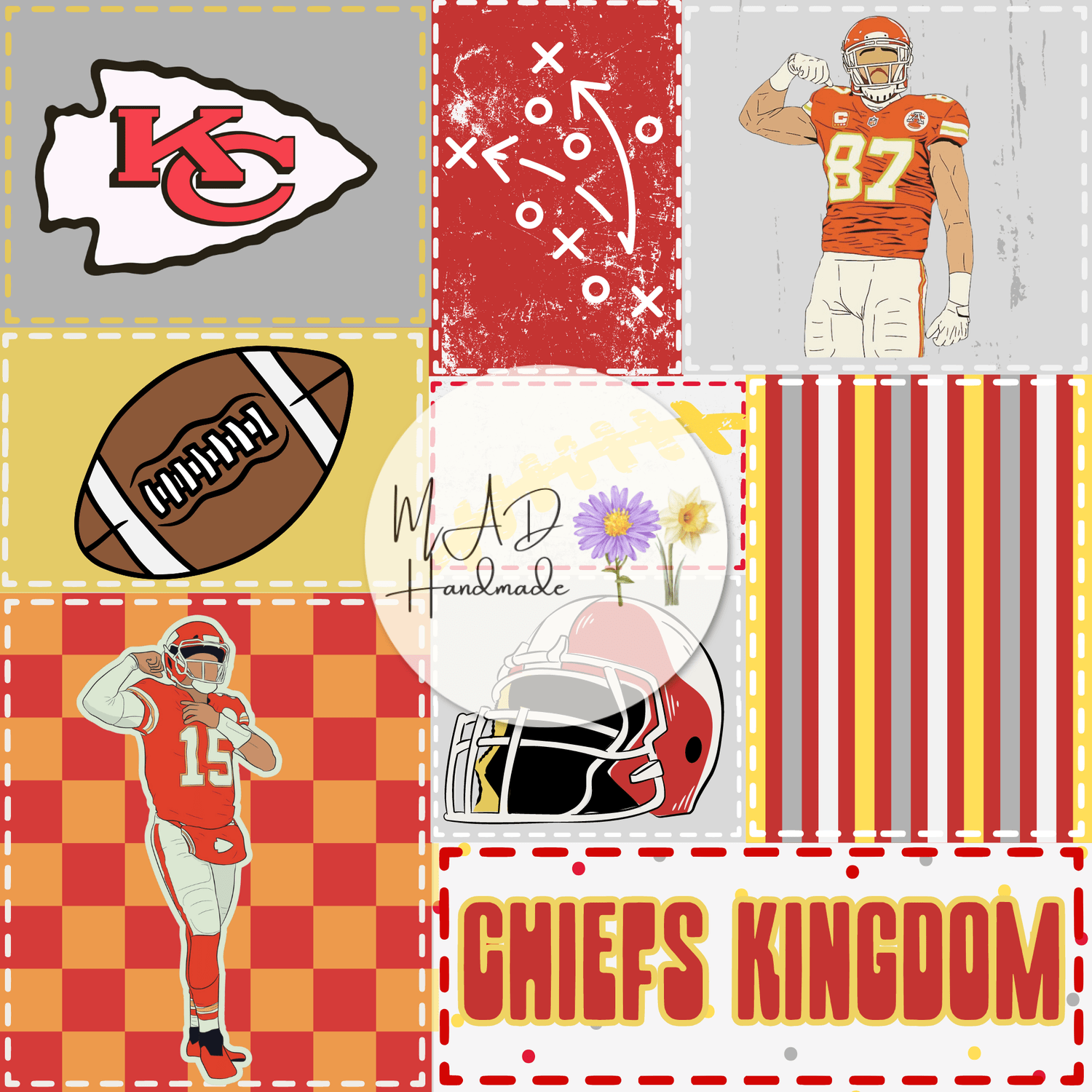 Chiefs, Floral, Helmets, Bracelets, Checkered, Patchwork, Collage, Floral Checkered, Stripes